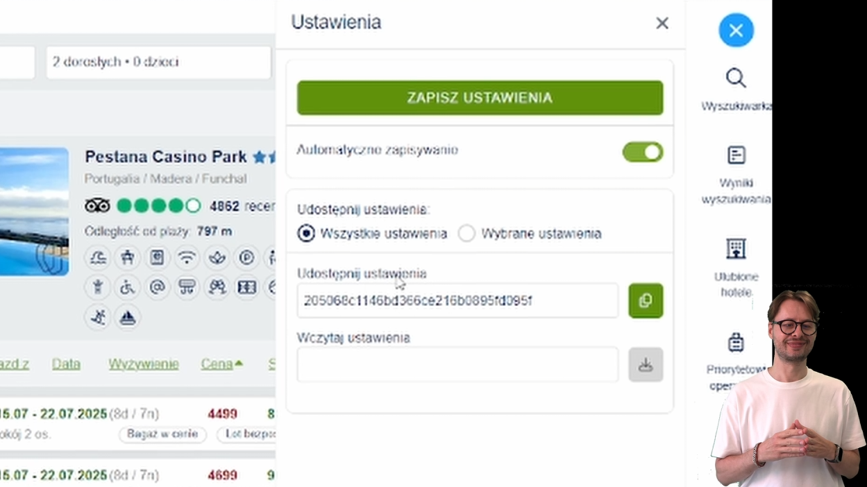 | Sprawdzanie miejsc w samolocie/hotelu | TAK/TAK |